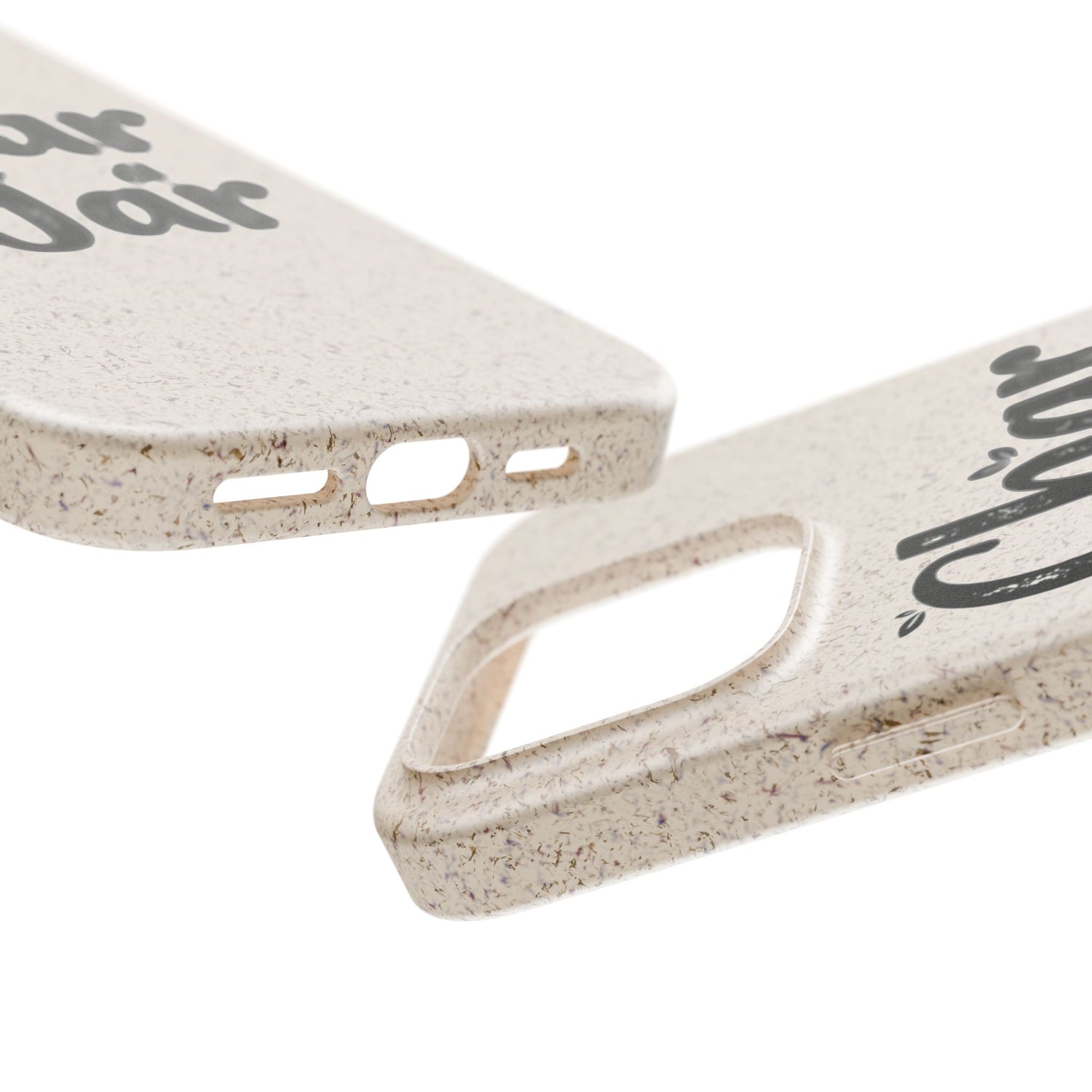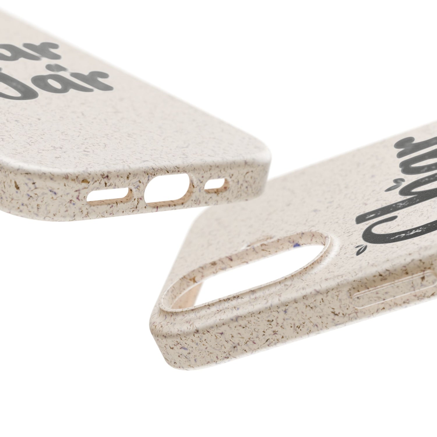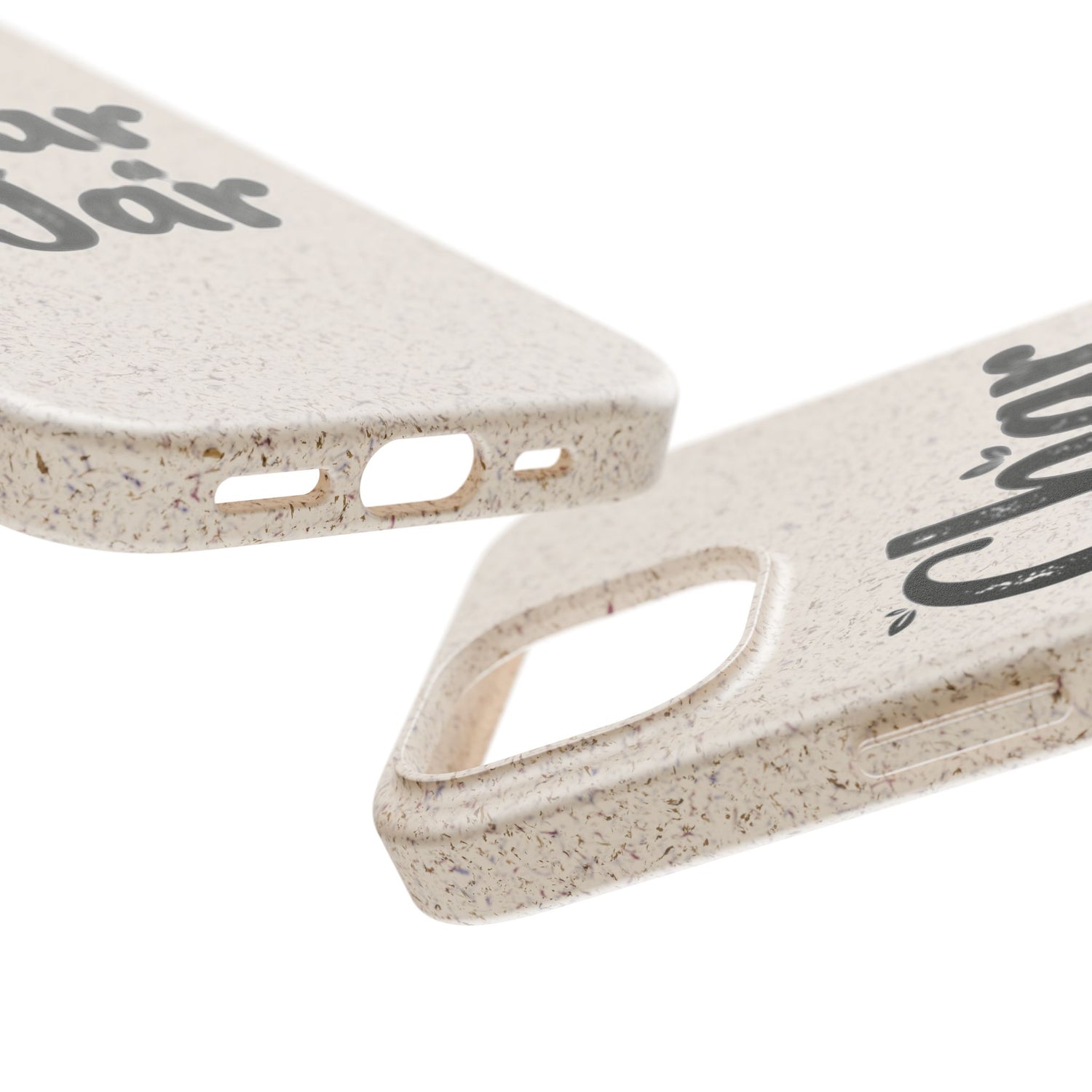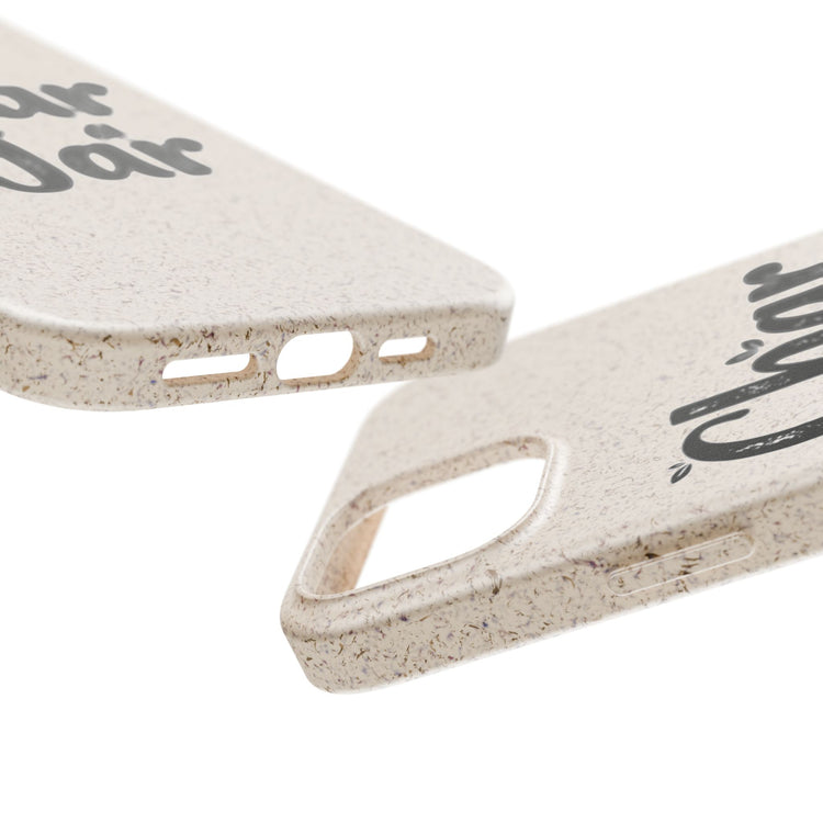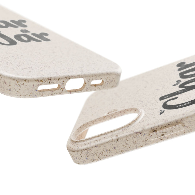Lightweight, matte phone protection that feels like a small, conscious choice. This biodegradable case carries a soft, sandy texture with tiny natural flecks and a bold, hand-lettered message that reads “Char in a Jar.” The slim, flexible shell absorbs everyday bumps while leaving access to all ports and buttons. It’s made from plant-based PLA with bamboo fibers, so it slowly returns to the earth instead of lingering in landfills. Colors stay bright thanks to modern printing, and the case works with MagSafe® wireless chargers when aligned — or lays flat on charging pads if you don’t use a ring. There may be a faint natural scent from the materials, and gift-ready packaging is available if you want to send this small, sustainable statement to someone who cares about craft and the planet.